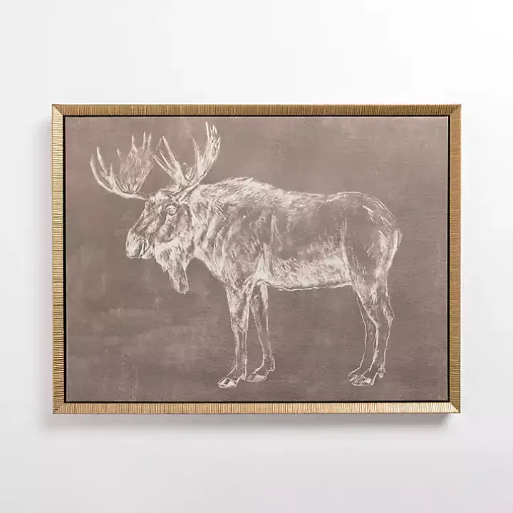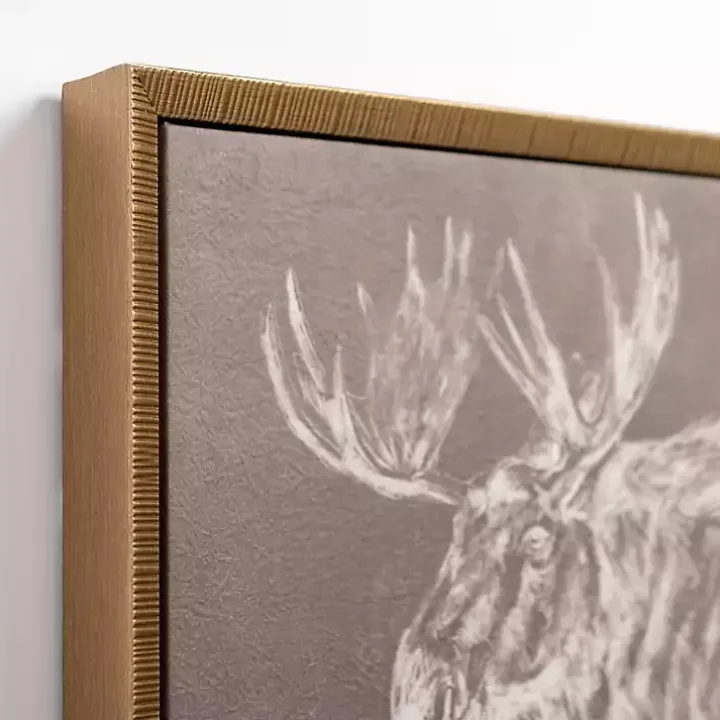 With its unique look, this Antique Moose Framed Canvas Art Print will put some personality on your walls. Its gold ribbed frame adds a stunning touch to any gallery wall!