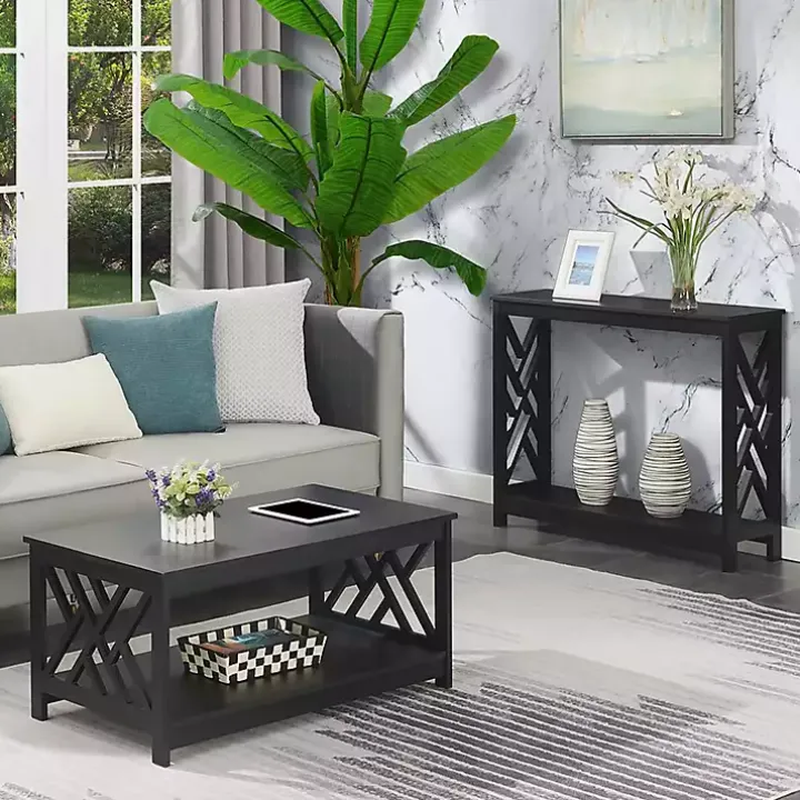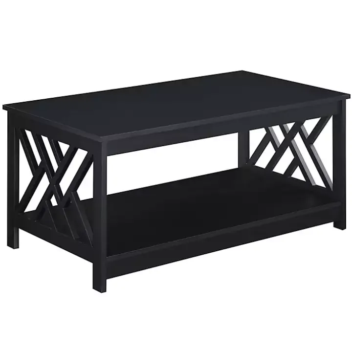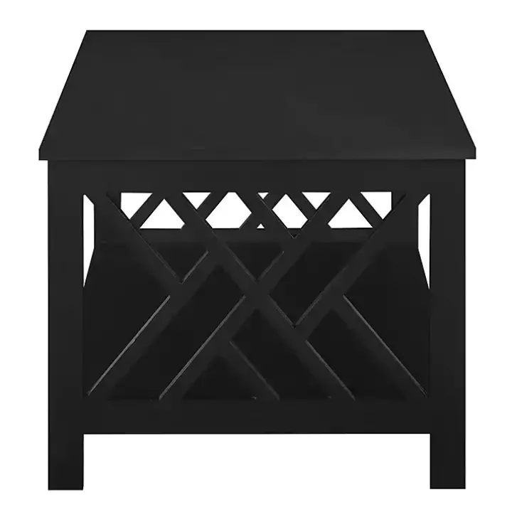 Modernize your living space with this Black Cut-Out Sides Coffee Table! The geometric cut-out panels make this table perfect for displaying décor from any angle.