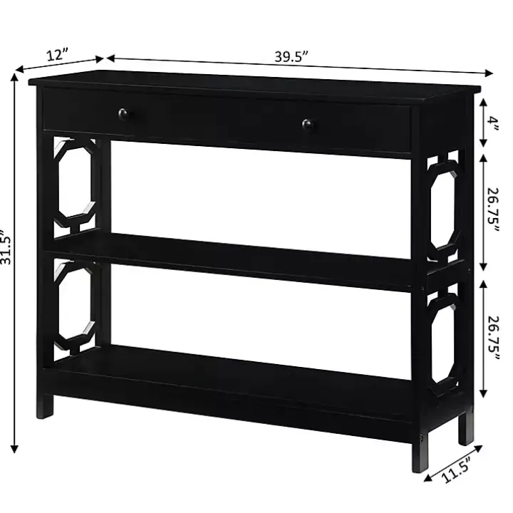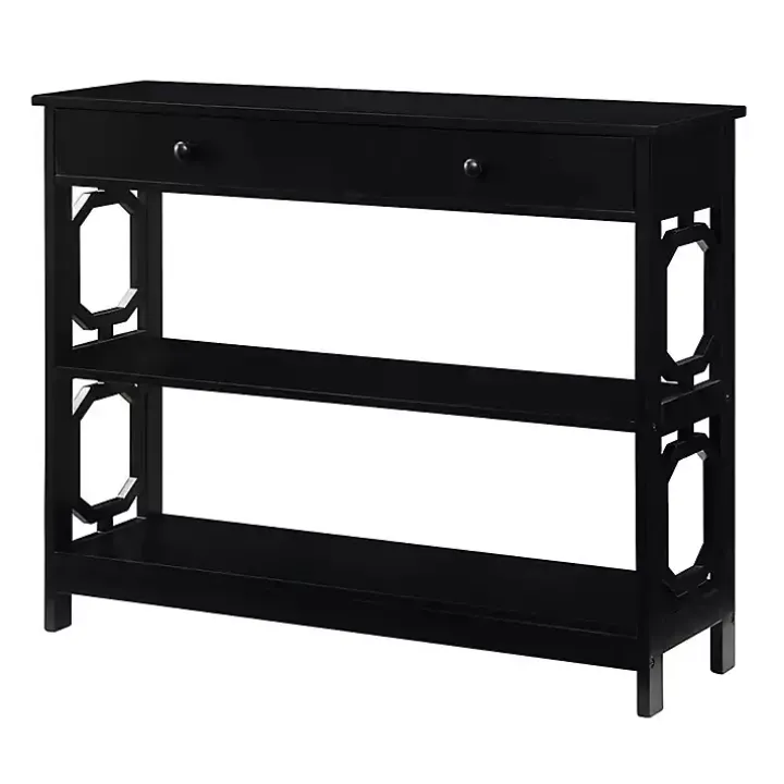 Update your space with the modern, geometric details of this Black Octagon 2-Shelf Console Table. Featuring clean lines and plenty room to display decor, it will make the perfect addition to your living room or entryway!