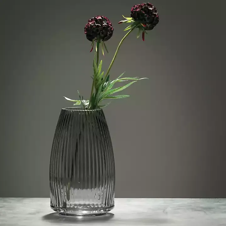 Add a modern elegance to your space with this Black Round Ribbed Glass Vase. Its chic, simple style is perfect for creating a beautiful floral centerpiece!