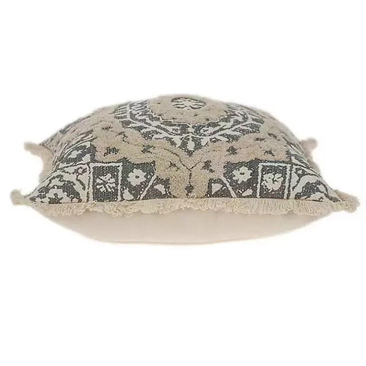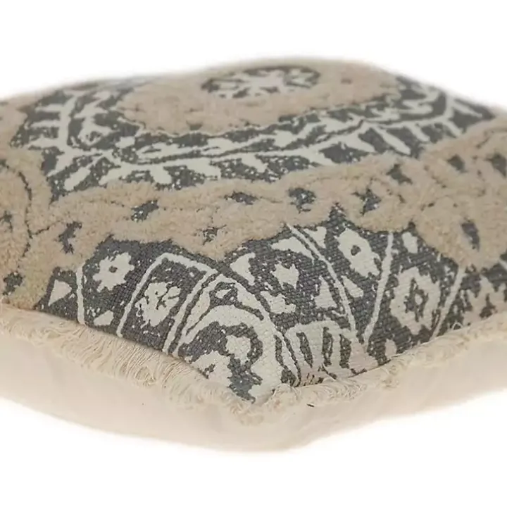 Embellish your sofa or bed design of this Blue and Tan Medallion Fringe Pillow. Its ornate design and textured accents bring a timeless touch to any space!