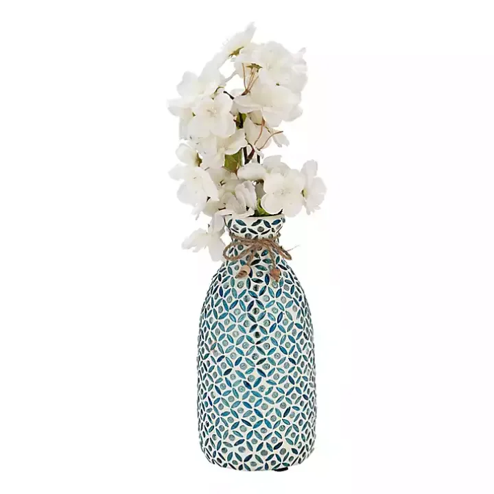 Hold your flowers with a fun accessories using our Blue Glass Mosaic Vase! You’ll love the beautiful color and whimsical design it’ll add to your home!