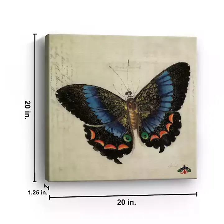 Add a touch of life to your walls with this Blue Vintage Butterfly Canvas Art Print. The beautiful bug will bring a lovely pop of color to your art collection!