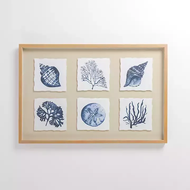 Featuring an assortment of seaside treasures in deep blue tones, this Coastal Icons Framed Art Print will bring a beautiful piece of the ocean into your home!