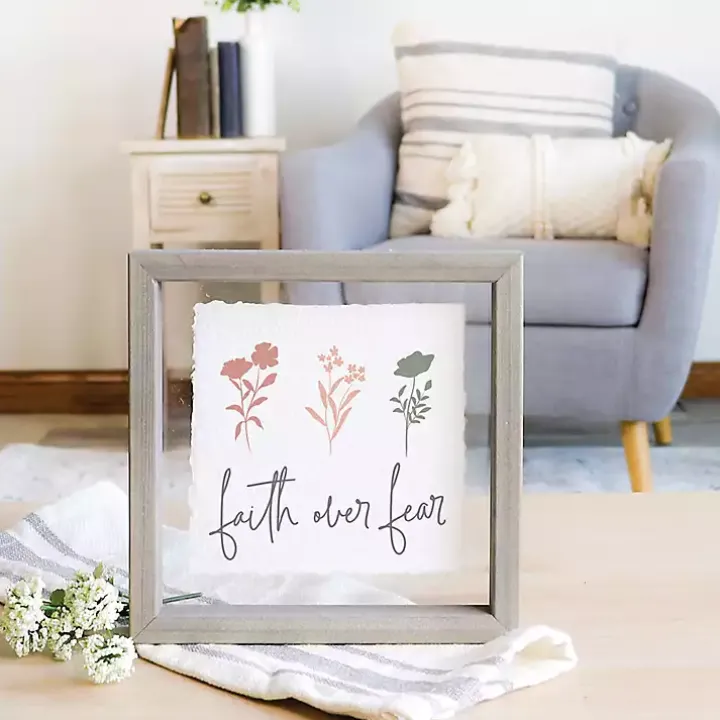 Add a decorative accent to your home with our Faith Over Fear Wall Plaque! This religious sentiment paired with beautiful floral details is the perfect statement piece for your entryway, living room, or bedroom!