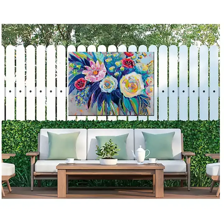 Bring your outdoor space to life with this Floral Array Outdoor Canvas Art Print. Its electric colors and lovely blooms are sure to brighten up any wall!