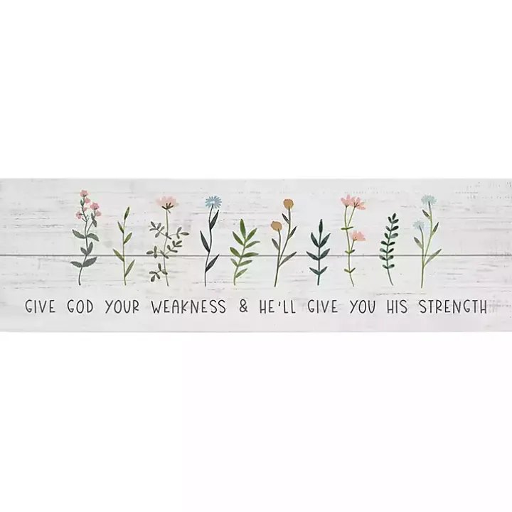 Our Give God Your Weakness Wall Plaque is the perfect little reminder for your home to trust in God! The beautiful floral details add a sweet touch that you’ll love in your entryway, living room, or bedroom!
