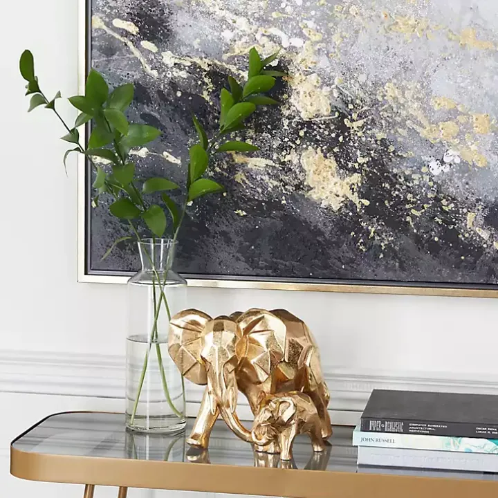Give your tabletop a modern, eye-catching look with our Gold Carved Elephant Family Statue! Interlocking trunks, this mother and baby elephant duo brings something sweet to your space.
