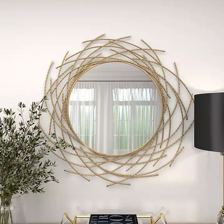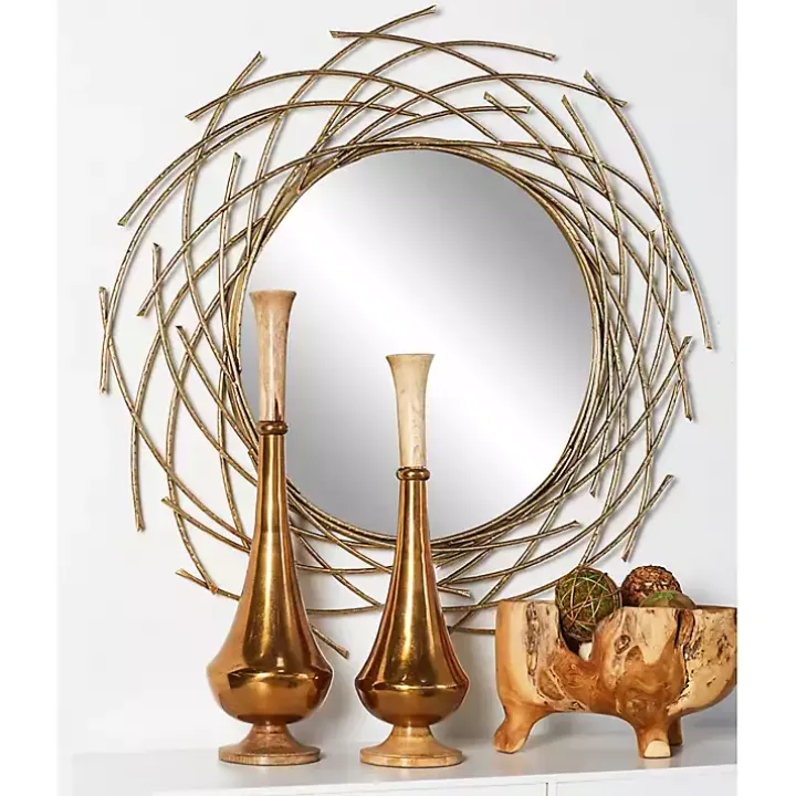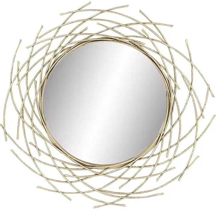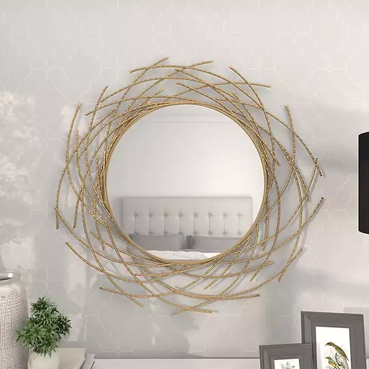 The Gold Metal Glam Layered Mirror is beautifully framed by twig-like bars, resulting in a design that resembles a nest. While adding unique texture and depth to any wall, it makes an eye-catching statement!