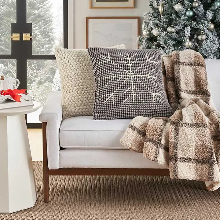 Let it snow with this Gray Looped Snowflake Pillow. With its warm tones and nubby texture, it’s sure to add a cute, cozy touch to your home this holiday season!