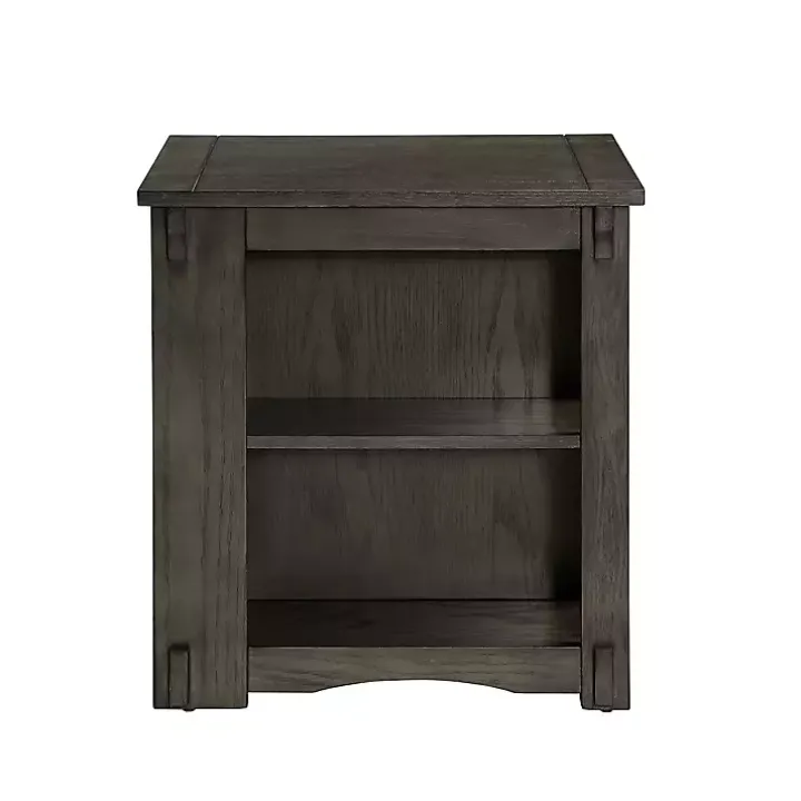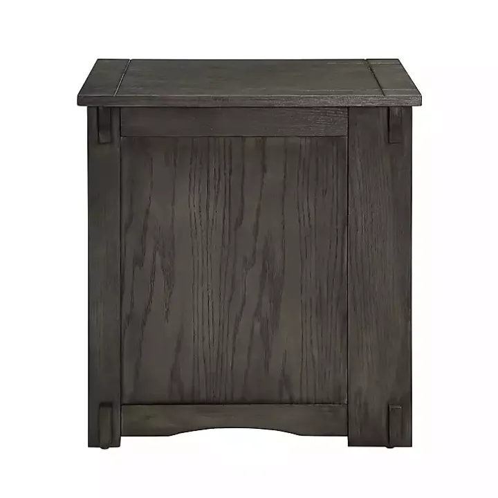 Meet the Gray Wood Parnell Storage Accent Table, featuring abundant storage and utility! Faux front drawers act as a cabinet door, while a pull-out shelf and a magazine rack on the back make the table even handier.