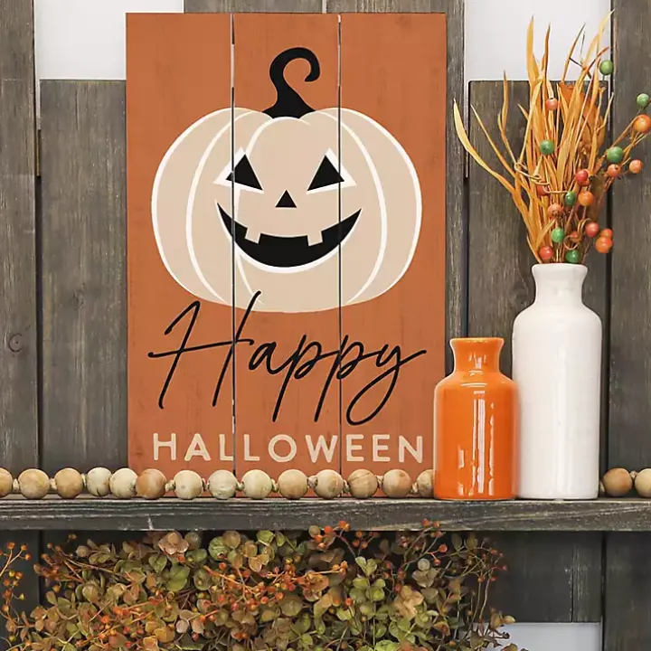 Embrace spooky season with this Halloween Jack O Lantern Wood Wall Plaque. Its cute, friendly pumpkin will put a playful touch on your Halloween decorations!