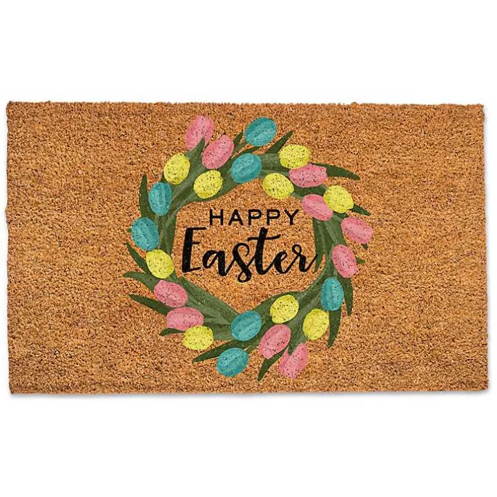 Give visitors a happy, spring greeting with this Happy Easter Egg Wreath Doormat. Its collection of bright, beautiful colors are sure to pop on your porch!