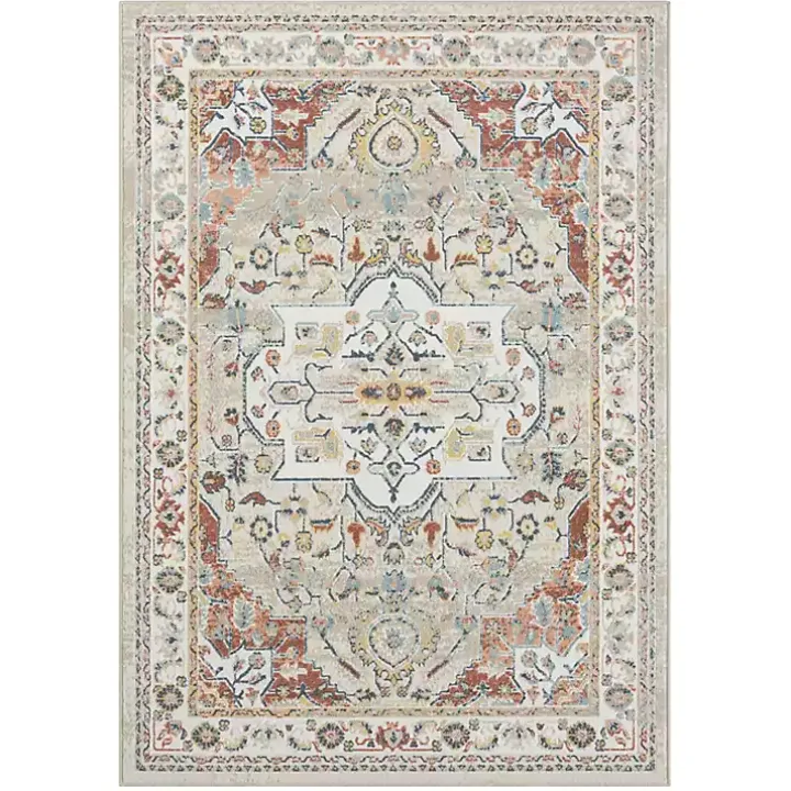 Give your room a vintage look with the Medallion Ivory Rust Area Rug! Its stunning design and burgundy hue will add a nice pop of color to your living space.