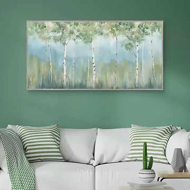 Immerse yourself in the tranquility of a woodland sanctuary. The beautiful grove in the Peaceful Oasis Framed Canvas Art Print is the perfect centerpiece to your living room wall!