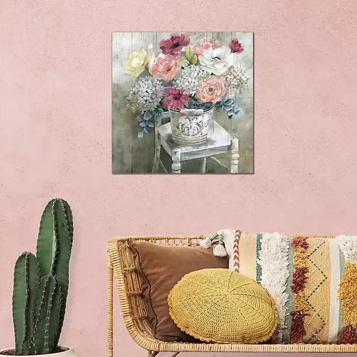 The Quaint Cottage Bouquet Giclee Canvas Art Print will awaken your walls with blooming vintage beauty. Style this lovely floral art in your bedroom or cozy reading nook.