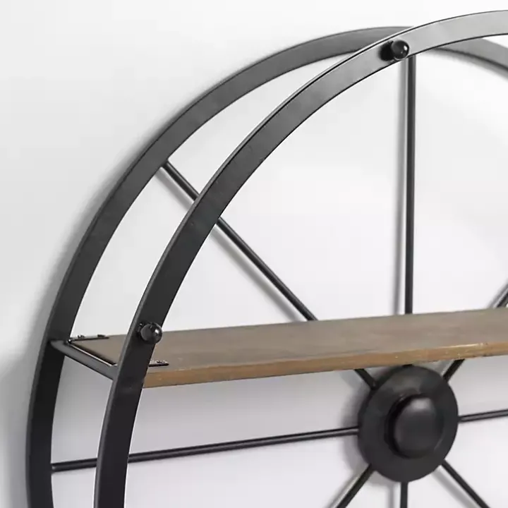 Add variety to your gallery wall with a shelf filled with decor! Our Round Wagon Wheel Wall Shelf provides a unique and stylish way to display your favorite books, trinkets, and more.