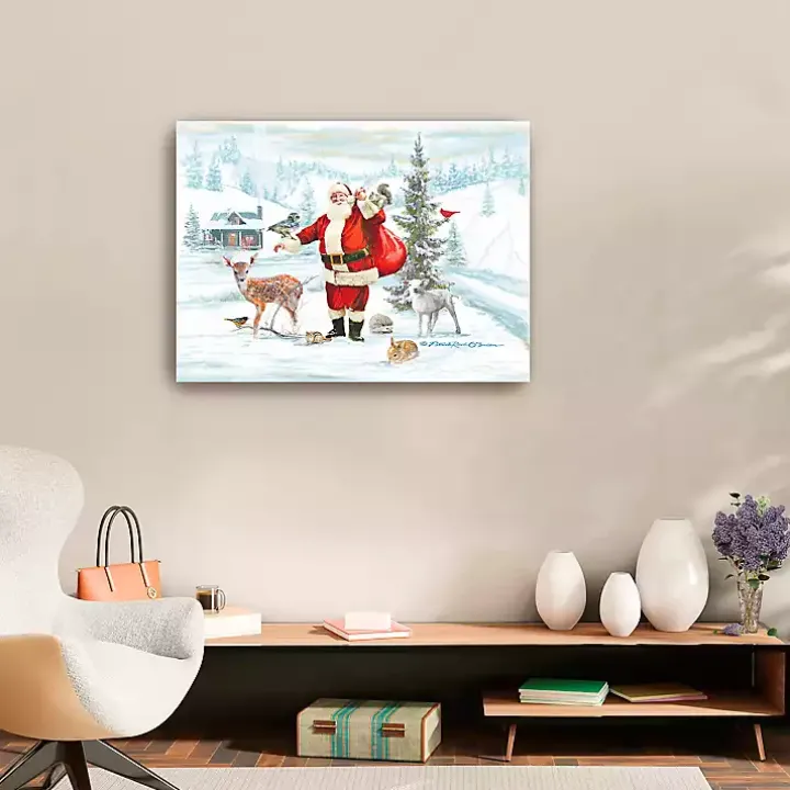 Update your wall decor for the season with this Santa with Woodland Friends Canvas Art Print. Santa and his animal crew will bring a burst of holiday joy to your space!