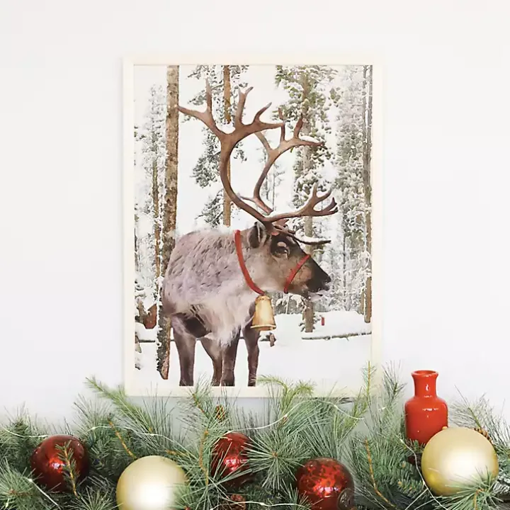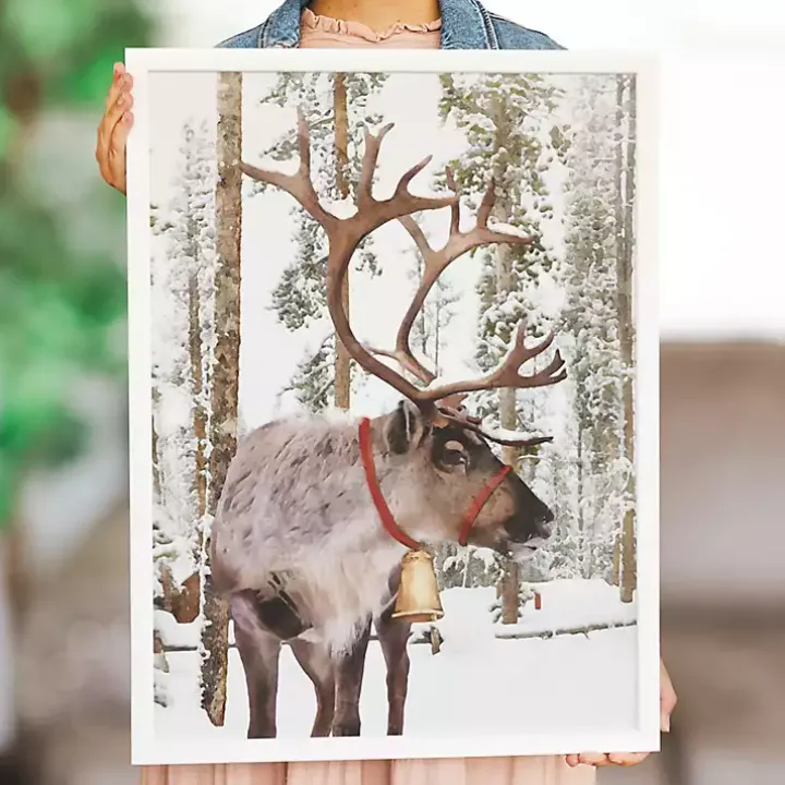 Let it snow! Featuring a reindeer in a wintry scene, this Santa’s Reindeer Framed Art Print captures the quiet, peaceful feeling of the first snowfall of the year!