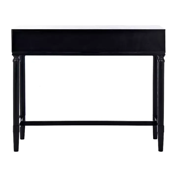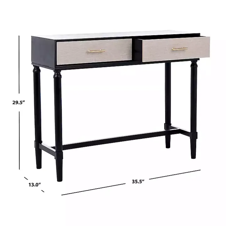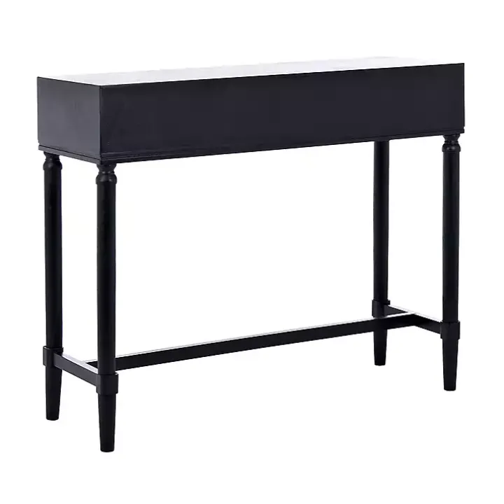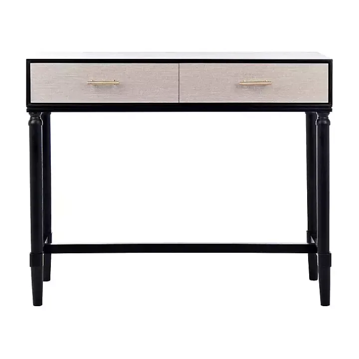 Make your entryway look chic and elegant using this Serena 2-Drawer Black Console Table. Featuring classic turned legs, sleek metal accents, and a two tone finish, this piece balances traditional and contemporary style.