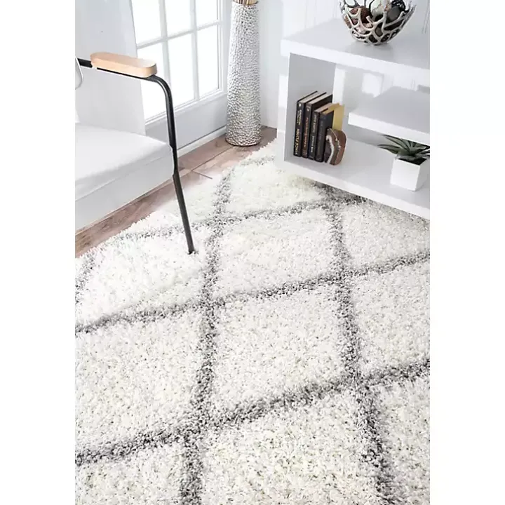Our Shanna Diamond Area Rug is the picture of plush comfort with its soft shag and simple lattice design. You’ll love its clean white and pale gray hues in your modern décor.