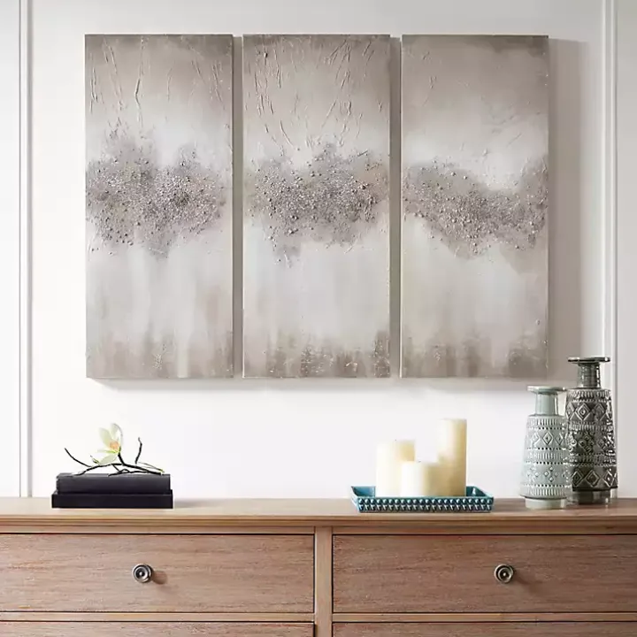 Our Taupe Luminous Embellished Art Print will add a unique texture to your industrial wall décor. Its pebbled, concrete look will be sure to standout amidst your iron and galvanized accents.