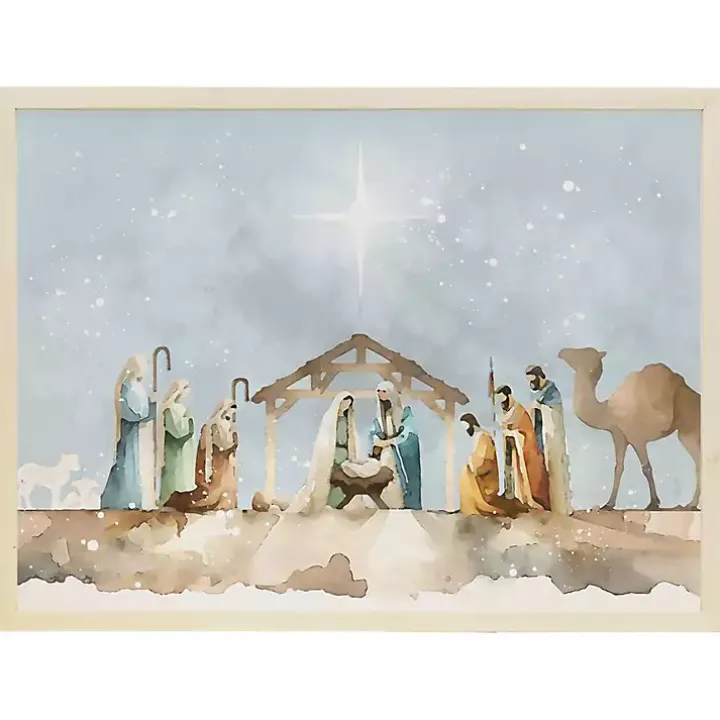 Celebrate the reason for the season with this Watercolor Nativity Scene Framed Art Print. Its soft color palette will bring a delicate charm to your Christmas decor!