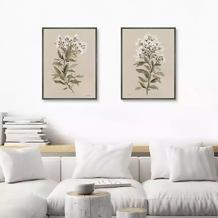 These White Floral Stems Framed Canvas Prints have an elegant, floral touch. The dainty flower designs and earthy tones will look beautiful hanging in any room!