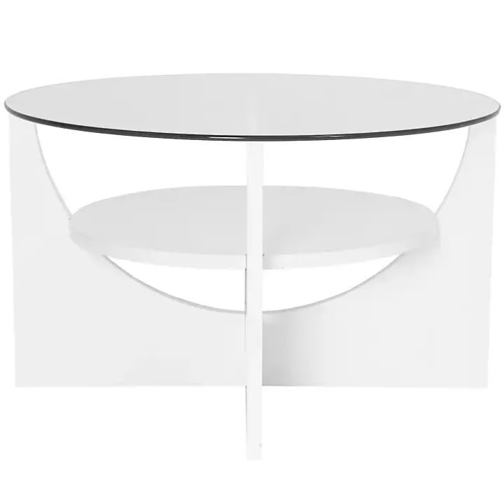 Give your living room a modern look with our White Round Glass Coffee Table! The unique overlapping U-shaped base and contemporary glass top will have you in love with your space!