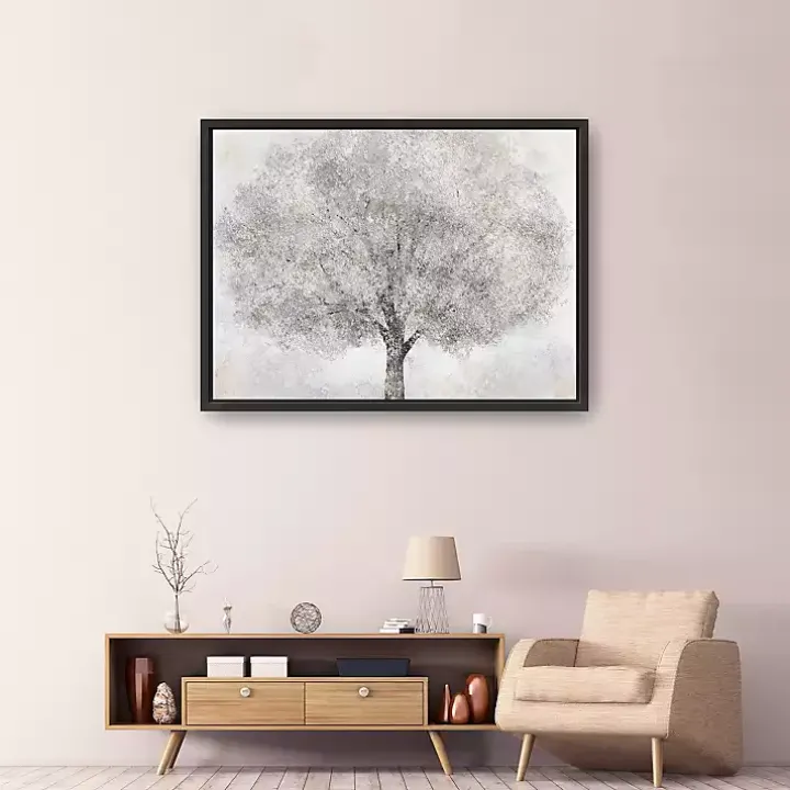 Featuring a tree that is forever in the bloom of spring, this White Tree Blossoms Framed Canvas Print will make a refreshing addition to your wall decor!