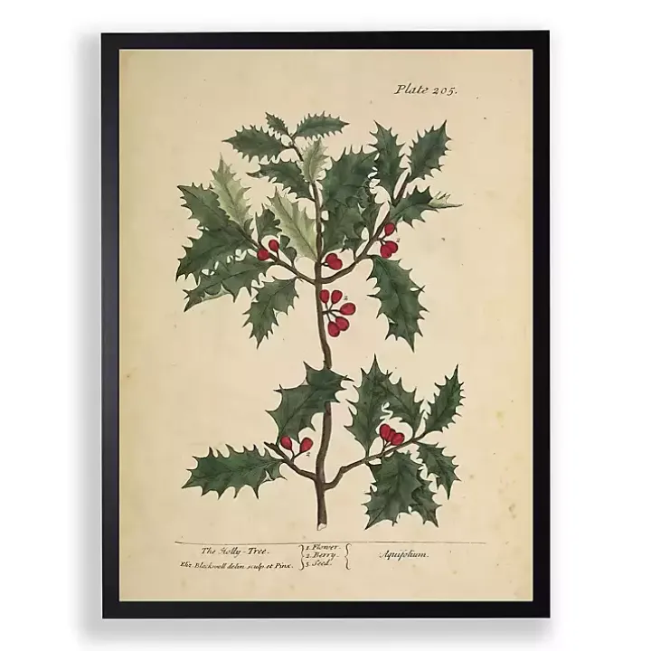 Bring vintage flair to your holiday wall display with the Antique Christmas Holly Framed Art Print. This detailed botanical art will look lovely with a rustic or modern Christmas décor style.