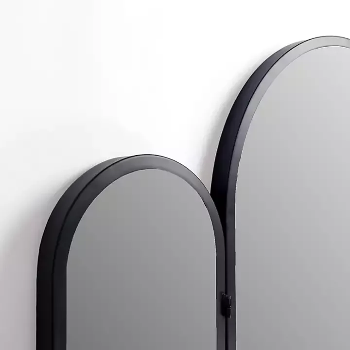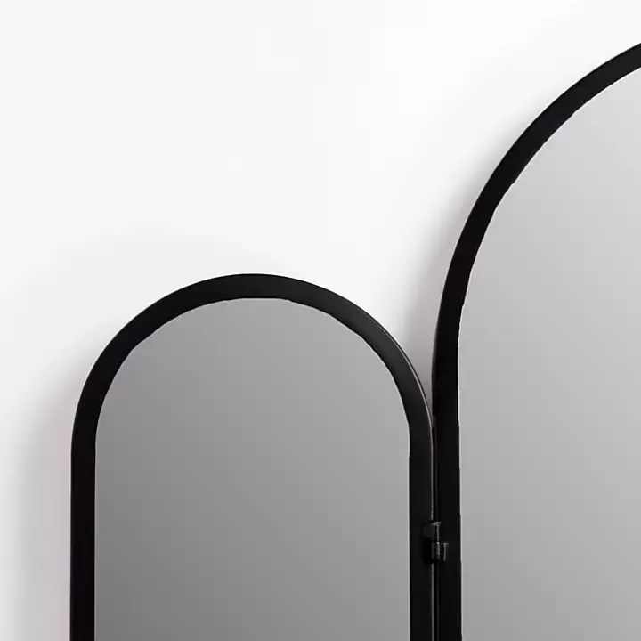 Upgrade your space with the sleek dimension of our Black Rounded Edge Trifold Wall Mirror. Its smooth, modern design will effortlessly complete your mantel or vanity!