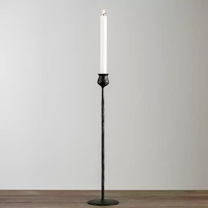 Elevate any space, from your mantel to your dining table, with this Black Textured Taper Candle Holder. Its simple, understated style will give any candle a classic look!