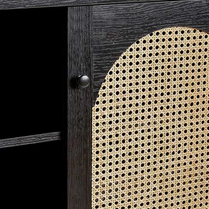 Add a bit of boho style to your home with this Black Wood and Rattan 2-Door Sideboard! The rattan panels make a statement and give your home a transitional, modern style with ample storage space.