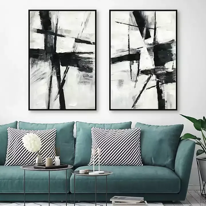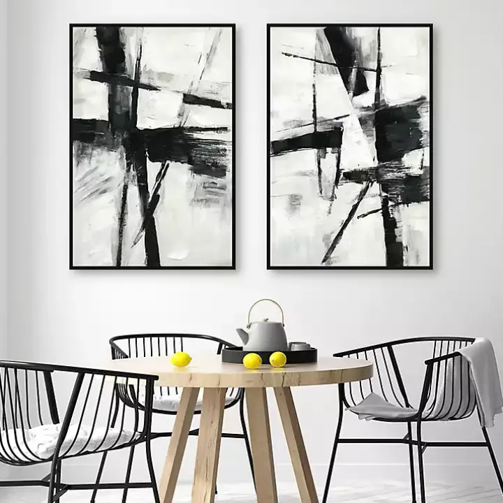 - Set includes two (2) framed canvas prints