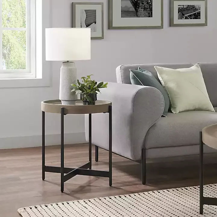 Repurpose any corner of your industrial space with our Concrete Round Tray Top Side Table! The raised edge top is perfect for keeping contents from rolling off the table.