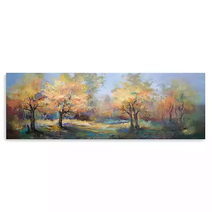 Freshen up the color palette of your rustic themed room with our Country Autumn Canvas Art Print. Featuring a landscape of vibrantly colored trees, this piece adds a gorgeous view to any wall.