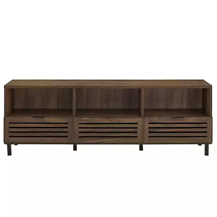 Our Dark Walnut Rustic Slat Door TV Stand will give your living space a trendy, contemporary look. You’ll love its sleek design and slat door accents! It’s the perfect way to organize your cords and media equipment.