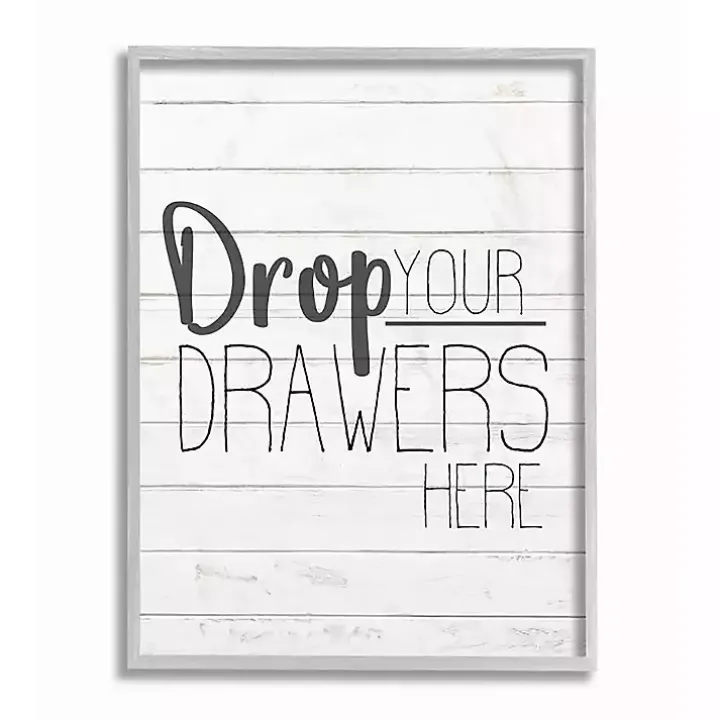 Our Drop Your Drawers Here Framed Wall Plaque delivers a sassy and cheeky message in a stylish way. This plaque is perfect for your bathroom or laundry room.