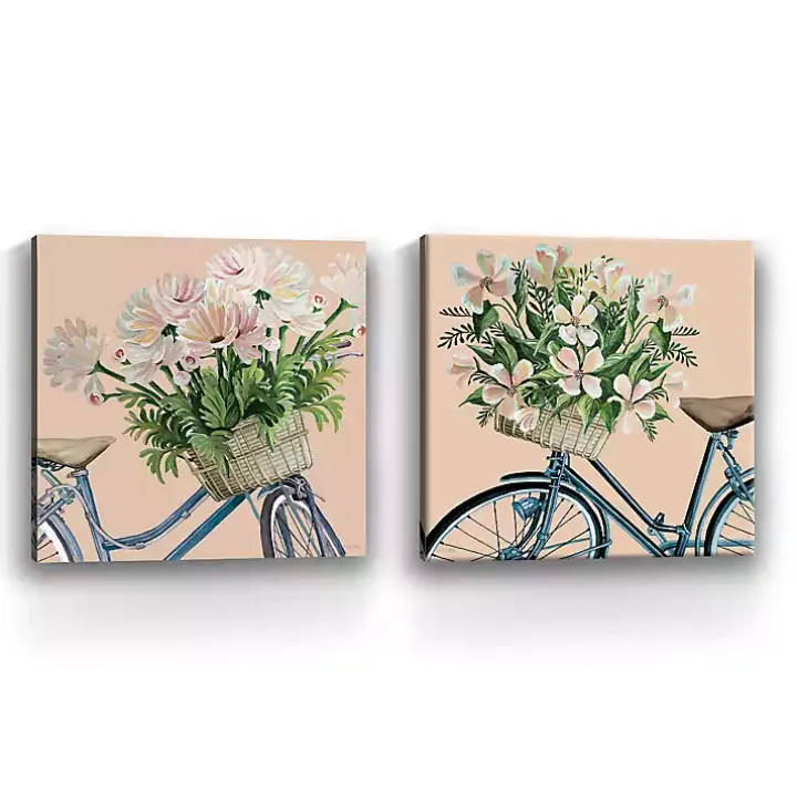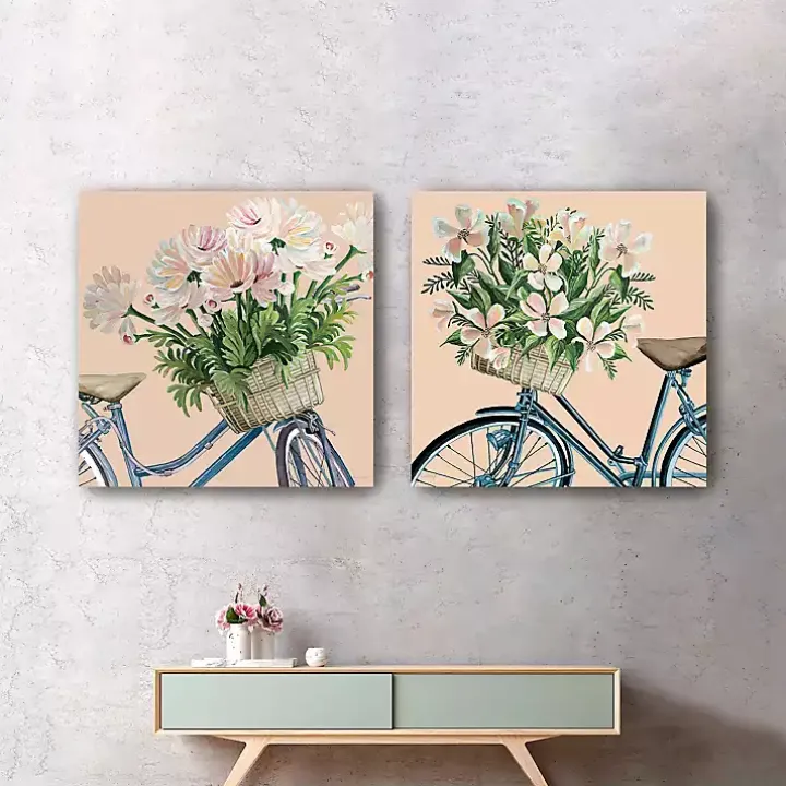 Floral Bikes Canvas Art Prints, Set of 2