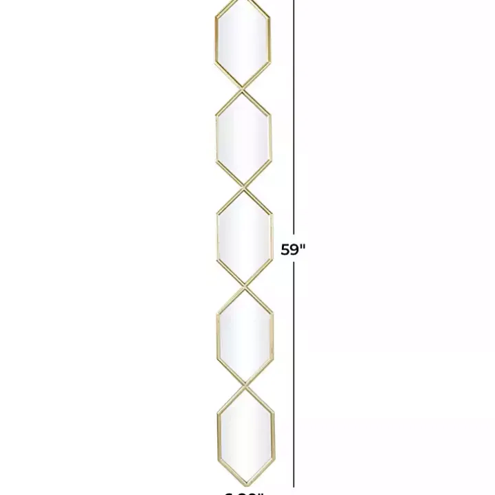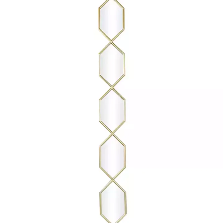 Embrace artistic expression with a style that highlights bold designs with sleek lines and a modern aesthetic. You’ll love how our Gold Slim Stacked Hexagons Wall Mirror brings your accent wall to life!