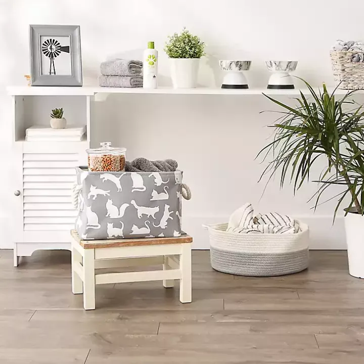 Keep all of your furry friend’s toys and accessories organized in one place with this Gray Cats Meow Rectangular Storage Bin. It’s perfect for any kitty.