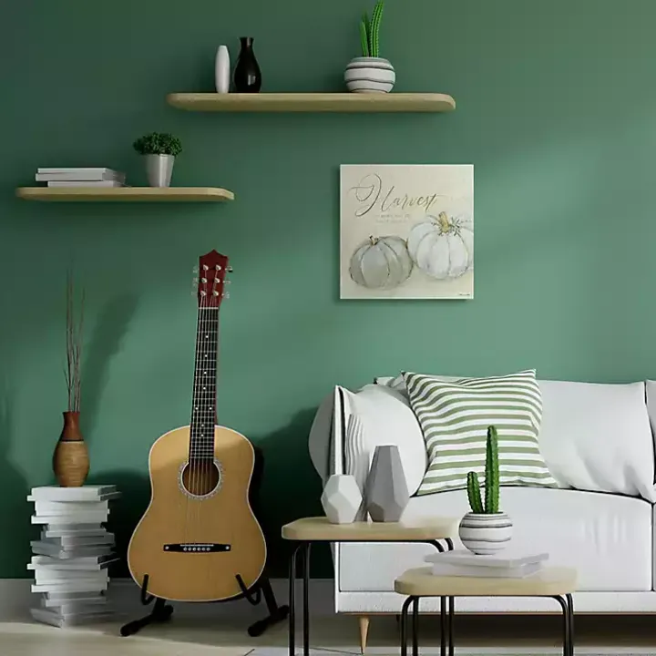 The Gray Pumpkins Autumn Harvest Canvas Art Print is the elegant fall art piece that your gathering room needs! Its warm, sentimental message will touch any guest.
