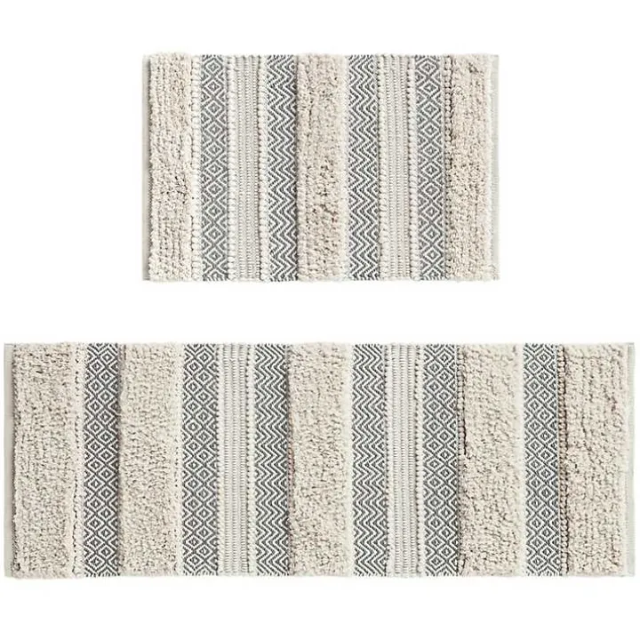 Globally inspired with an artisan touch, the Gray Tufted Stripes Woven Bath Mat is the perfect update to refresh your bathroom decor. You’ll love the neutral look and soft feel under your feet!