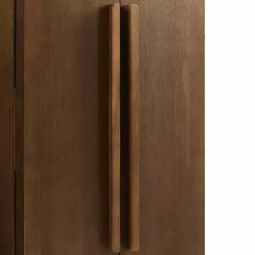 Experience a new level of jewelry organization and display with our Mid-Century Modern Walnut Jewelry Armoire! This armoire includes rows of hooks, a concealed storage compartment, drawers, and a vanity mirror to keep you organized!