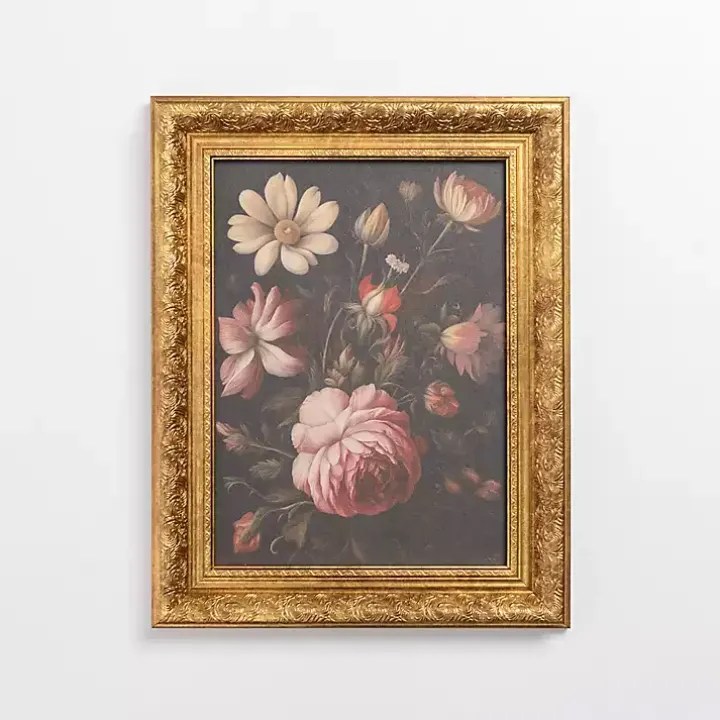 Featuring contrasts of light and dark tones, this Moody Mixed Floral Framed Art Print will bring a bold beauty to your art collection! Its ornate frame makes a statement on any wall!