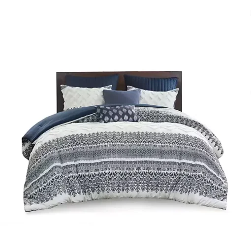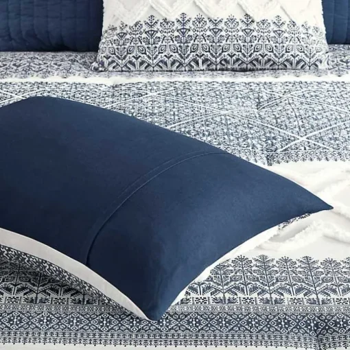 Express your eccentric, bohemian style with this Navy and White 3-pc. Full/Queen Comforter Set! You’ll love its bold tones and geometric, textured accents.