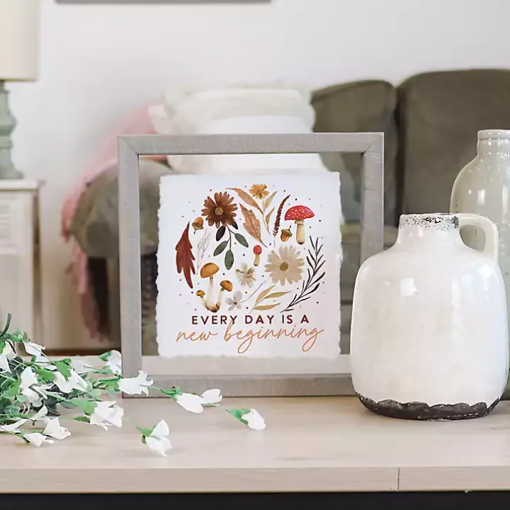 This New Beginning Fall Foliage Framed Wall Plaque will update your wall decor for autumn. With cute mushrooms and flowers, this piece embraces the natural charm of the season!