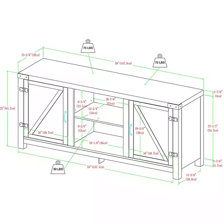- Stand measures 58.75L x 15.5W x 25H in.