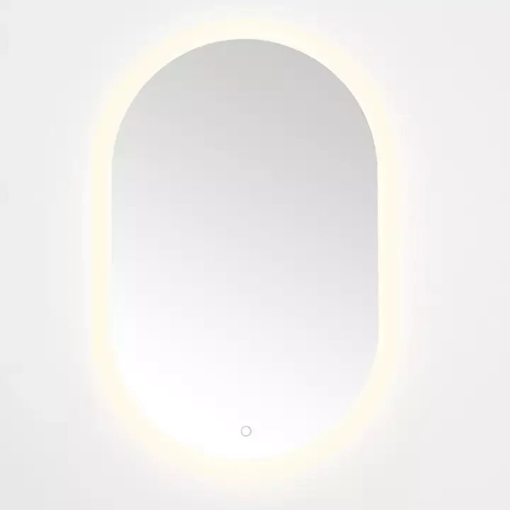 Elevate your space with the modern, curved lines of this Oval Wes LED Wall Mirror. Its LED frame creates a halo effect, ideal for the perfect makeup routine!